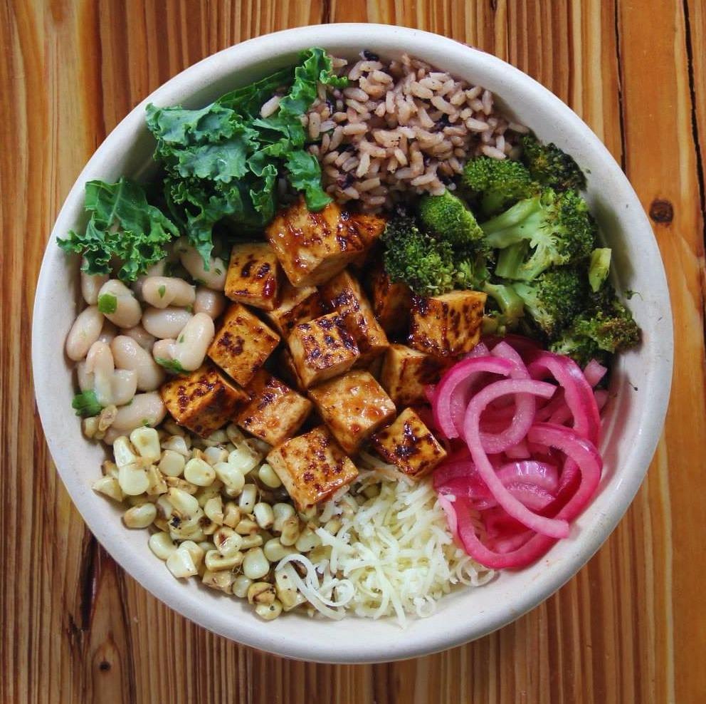 Ingredients: Chickpeas, Roasted Broccoli, Charred Corn, Lime-Pickled Onions, Cheddar